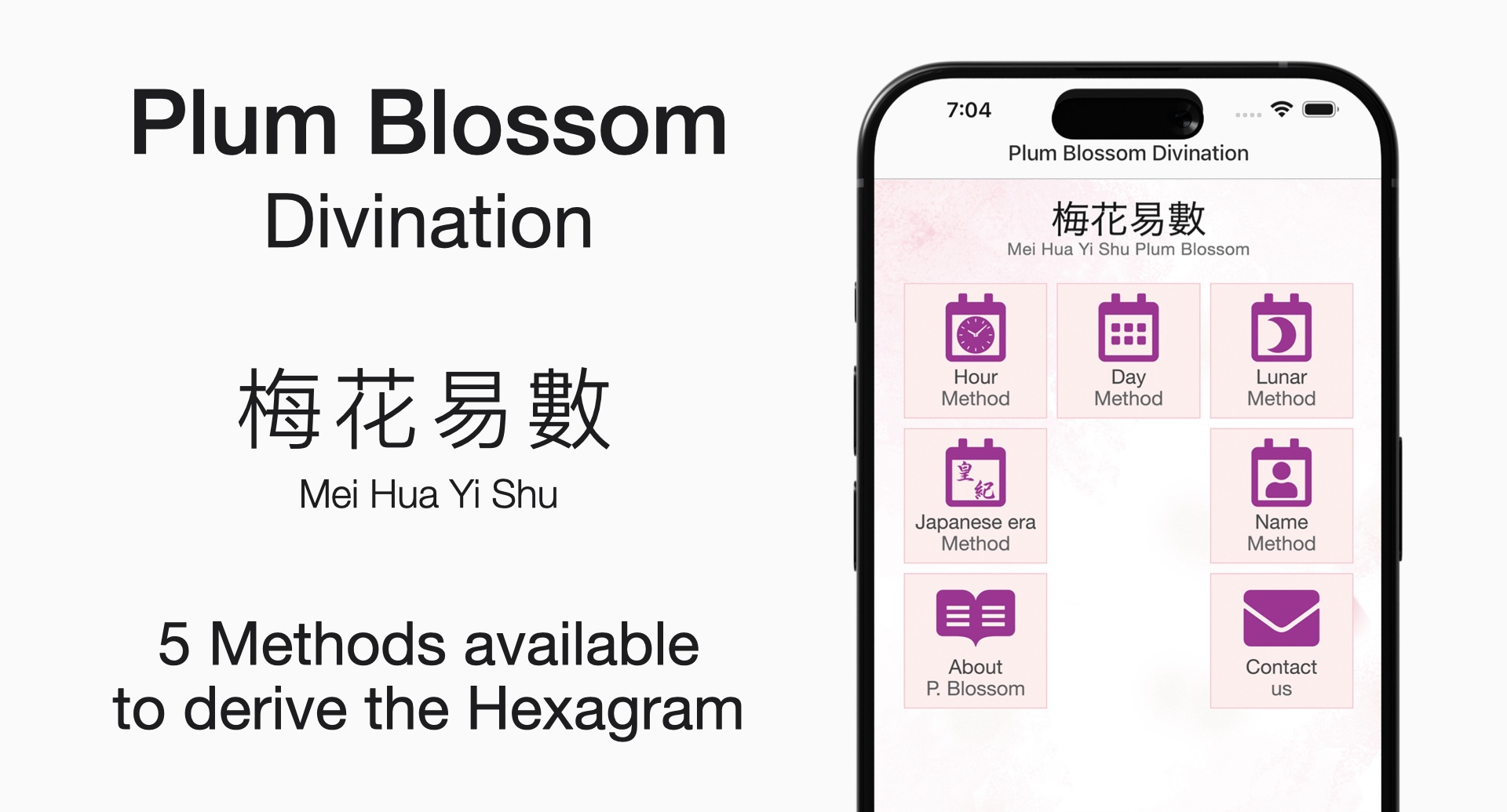 Plum Blossom Divination, or Mei Hua Yi Shu 梅花易數, is an ancient Chinese calculation Method based on the Yi Jing 易經.