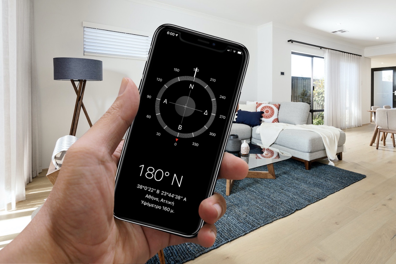 Πηγαίνουμε στο κέντρο του σπιτιού και έχοντας το κινητό εμπρός μας, περιστρεφόμαστε τόσο, ώστε να εντοπίσουμε (από – έως) τις μοίρες της κατεύθυνσης που θέλουμε, έτσι εντοπίζουμε με ακρίβεια τις μοίρες της κατεύθυνσης.
